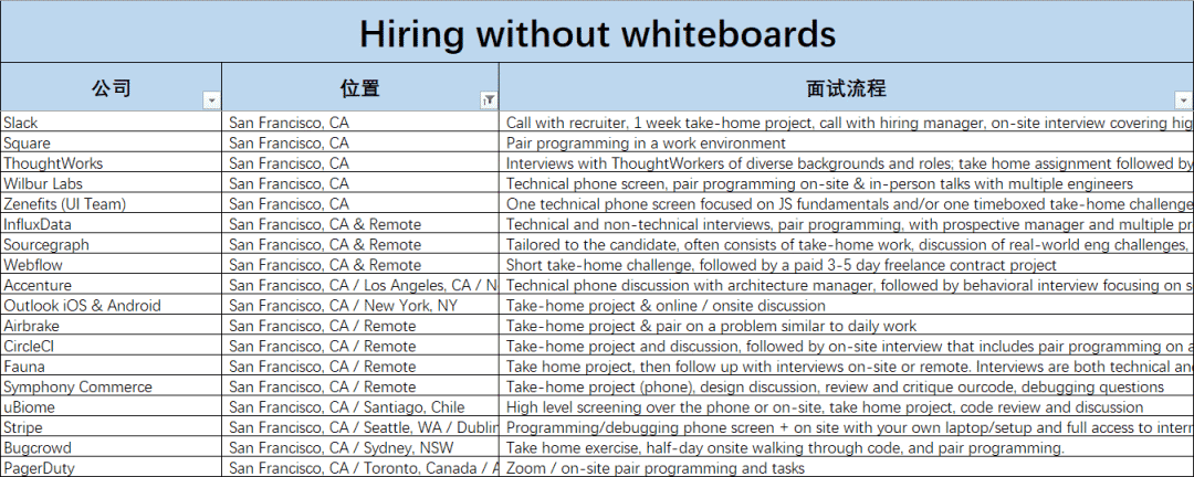 经初步筛选后,我们发现北美地区有近300家,其中不乏湾区的知名科技公司,如Stripe,Slack,Netflix,Github等等。