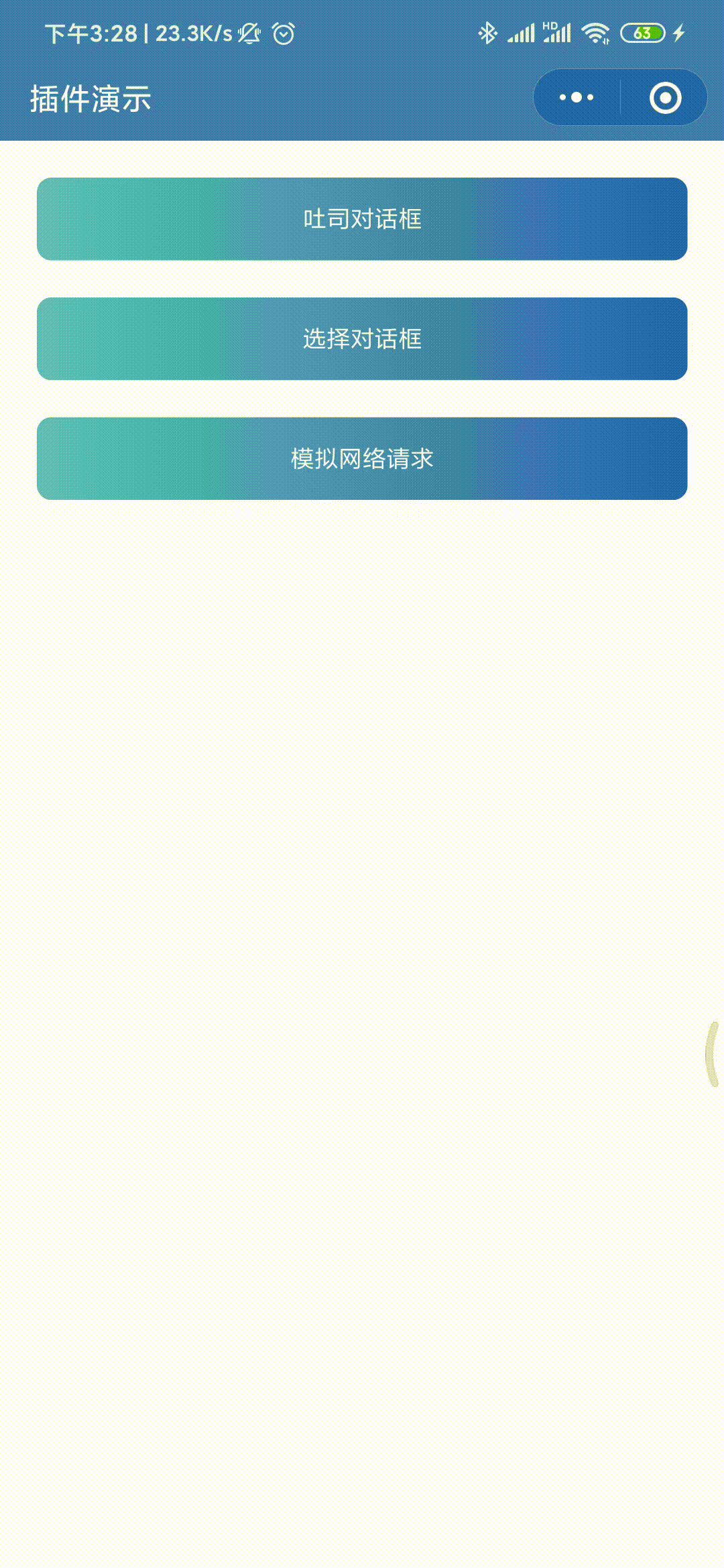 基于插件相关功能Util类封装(loadToastUtil) 插件页面基本已经好了,还差一个工具类,调用比较方便。 dialogUtil.js 我是直接封装成了一个class类,在构造方法中传入小程序Page对象,baseUrl以及插件id,简单暴露了一些方法供每一个页面调用。 需要注意的是小程序中的一个api selectComponent。 通过这个获取到插件对象,以此来调用插件js文件中写好的方法