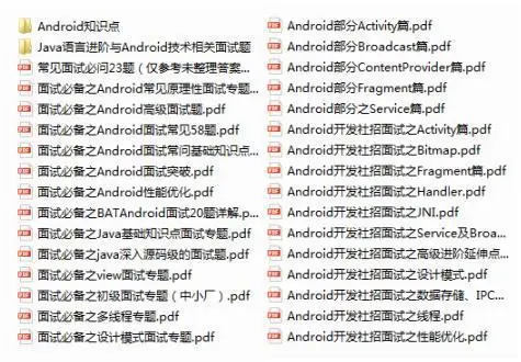 在这里我也分享一份由几位大佬一起收录整理的Android学习PDF+架构视频+面试文档+核心笔记,高级架构技术进阶脑图、Android开发面试专题资料,高级进阶架构资料