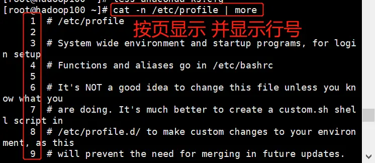 案例:显示 /etc/profile 文件内容,并显示行号