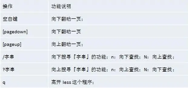 描述:less 指令用来分屏查看文件内容,它的功能与 more 指令类似,但是比 more 指令更加强大,支持各种显示终端。less 指令在显示文件内容时,并不是一次将整个文件加载之后才显示,而是根据显示需要加载内容,对于显示大型文件具有较高的效率。