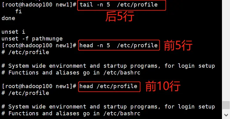 head/tail -n 行数 文件(显示文件头部/尾部指定行数)