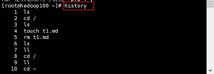 描述:显示当前用户的历史操作命令