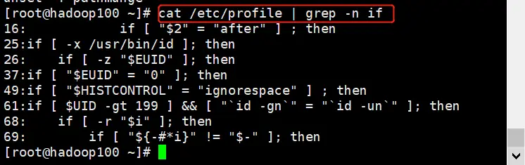 案例:查找/etc/profile 中 if 所在行内容