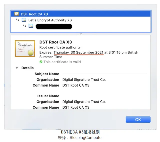 Helme预计下一个“潜在重要日期”是2021年9月30日。那时DST根CA X3颁发的CA证书将过期。