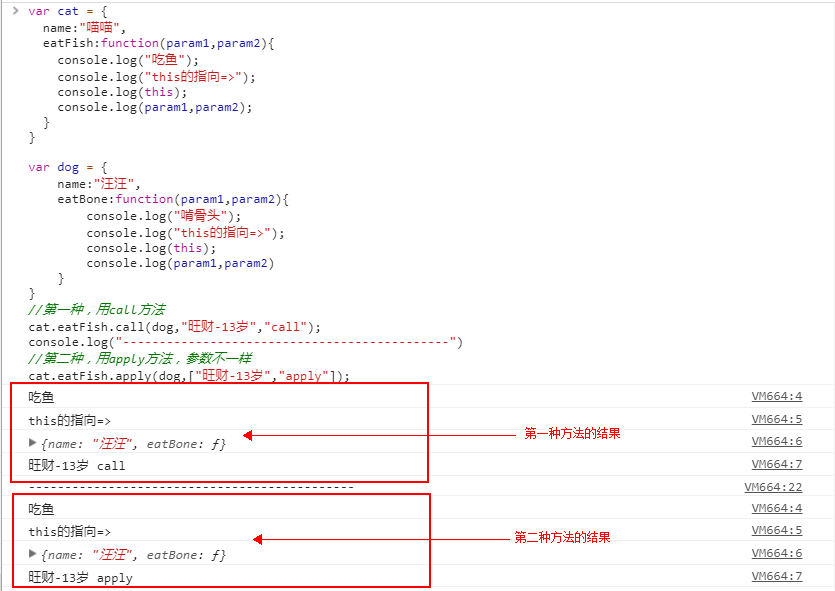 cat.eatFish.apply(dog,["旺财-13岁","apply"]);
