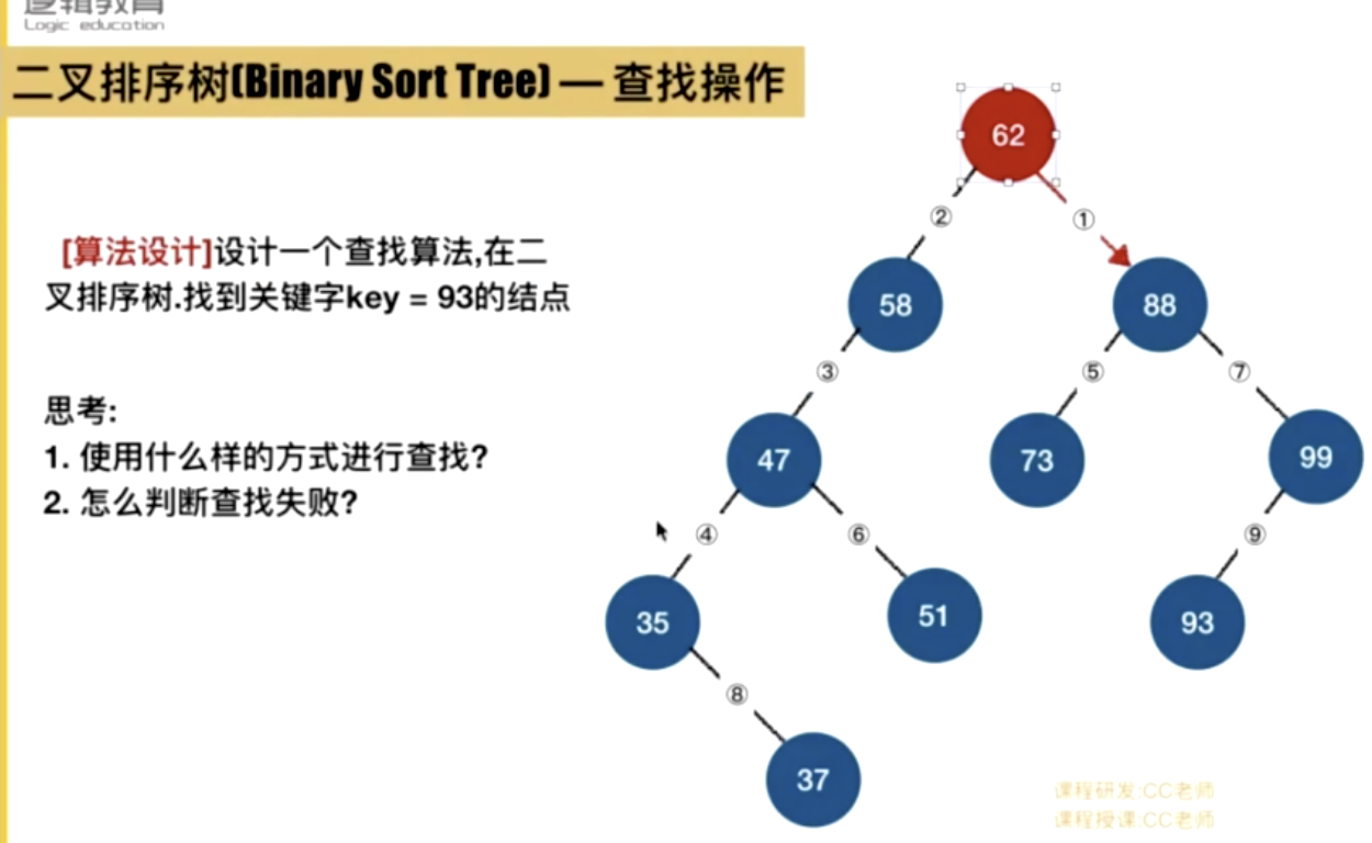- 首先和根节点进行比较,如果等于根节点,则返回。如果小于根节点,则在根节点的左子树进行查找。如果大于根节点,则在根节点的右子树进行查找。