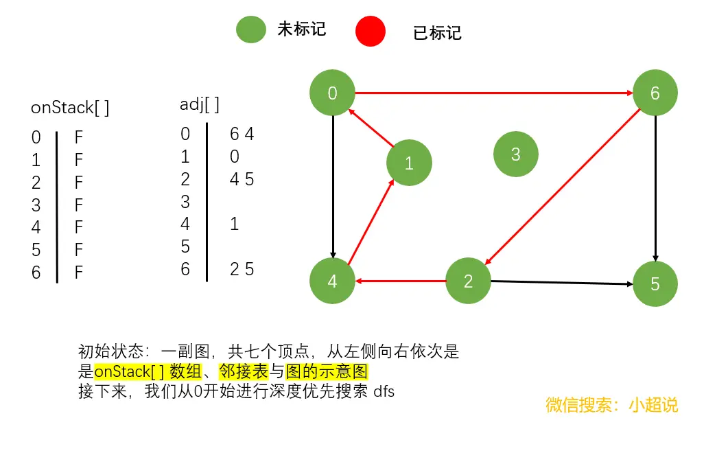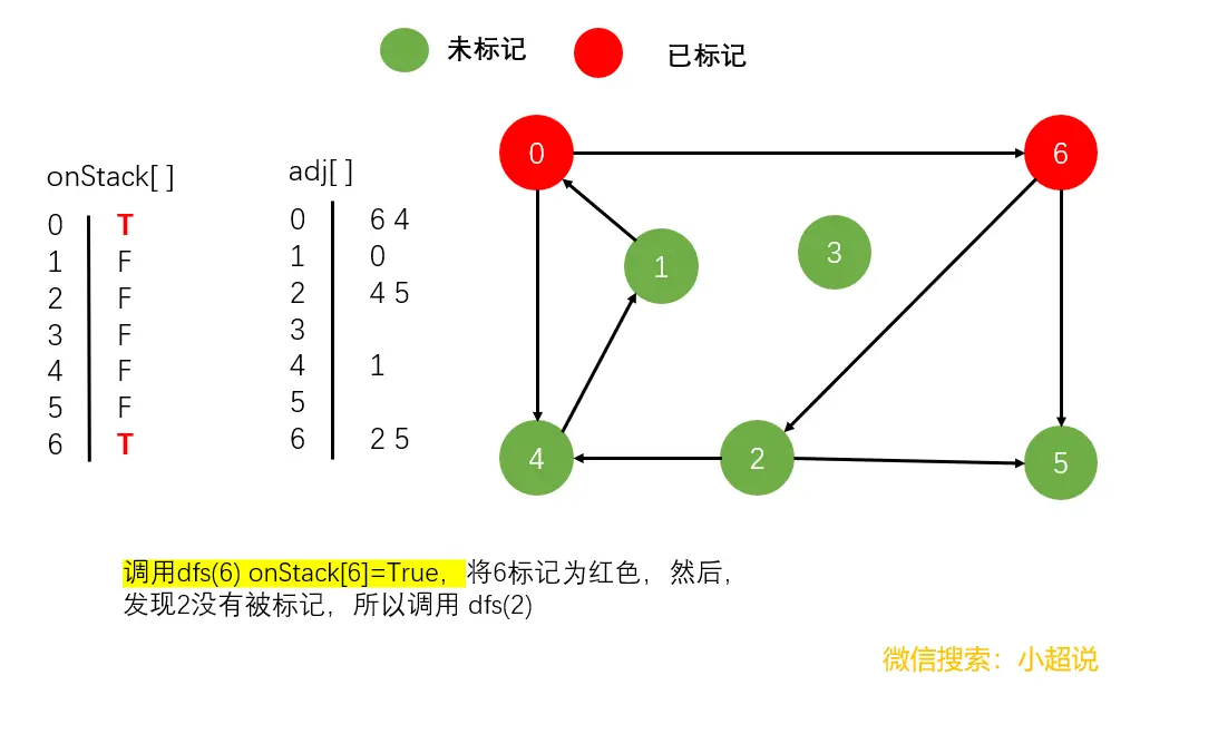 该类为标准的递归 dfs() 方法添加了一个布尔类型的数组 onStack[] 来保存递归调用期间栈上的