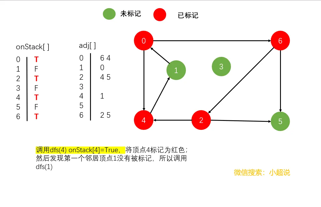 dfs(G,v) 时将 onStack[v] 设为 True,在调用结束时将其设为 false)。DirectedCycle 同时也