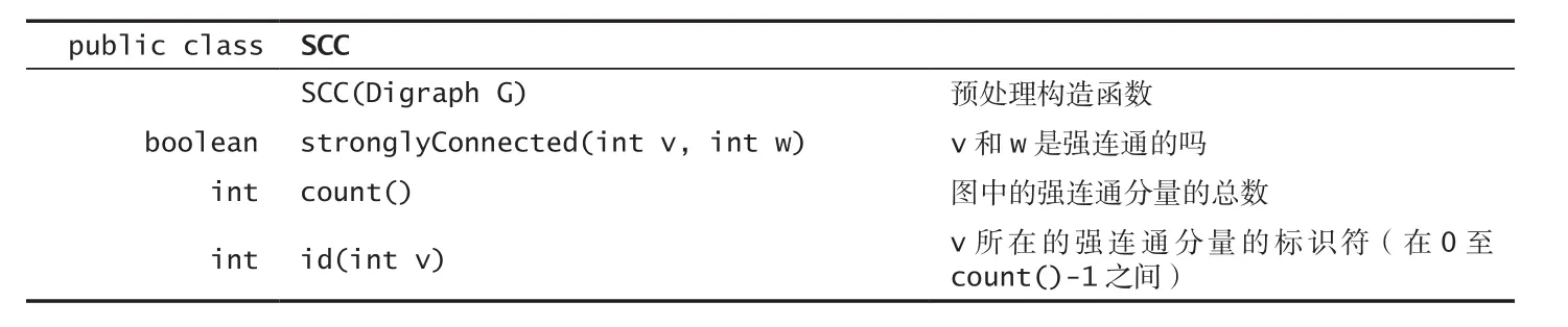 v和w是互相可达的,则称它们为强连通的。也就是说,既存在一条从v到w的有向路径,也存在一条从w到v的有向路径。如果一幅有向图中的任意两个顶点都是强 连通的,则称这幅有向图也是强连通的。