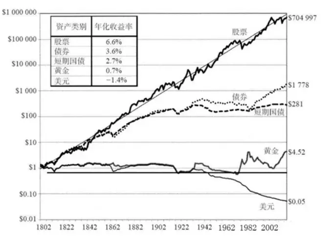 来看看下面这张图,从1800年到2002年这202年间各类资产的增长情况。