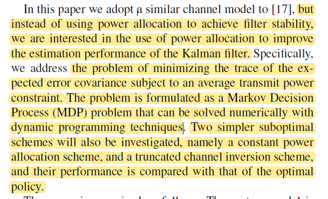 Power Allocation for Error Covariance Minimization in Kalman Filtering Over Pack 赤西沽 2020-07-15 174 阅读1分钟 Power Allocation for Error Covariance Minimization in Kalman Filtering Over Packet Dropping Links 丢包链路上的卡尔曼滤波中误差协方差最小化的功率分配 全文概述:
