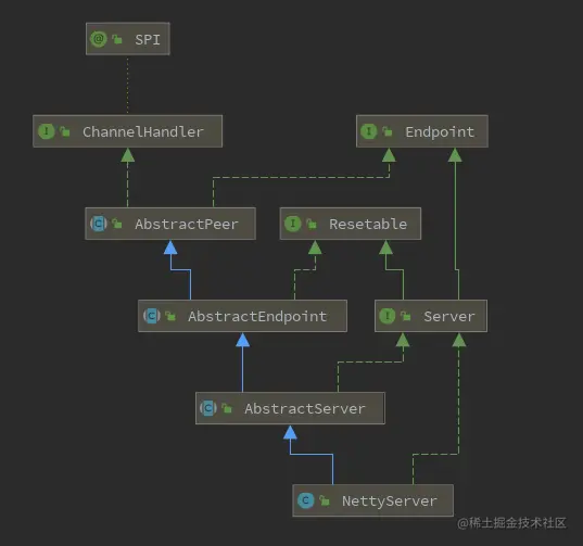 紧跟时序图,可以看到最后创建了 NettyServer 对象;