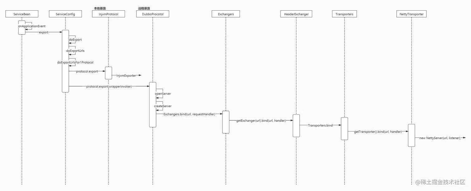 大致逻辑就是获取服务机器的地址(一般为 ip:port)作为KEY,如果是一个服务则根据地址信息从缓存的Map获取已经暴露的服务:
