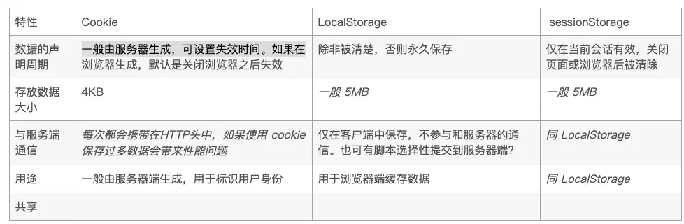 - Cookies一般只能存储4KB字符串内容,Cookies可以设置过期日期。