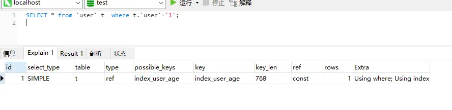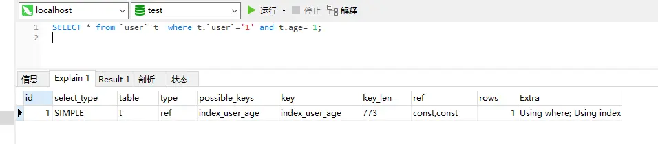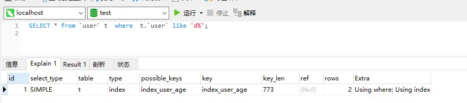 有如下表和索引