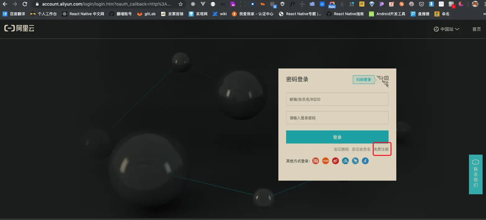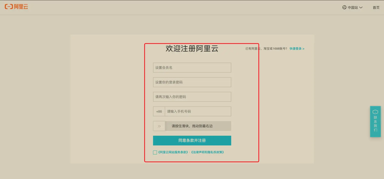 填写自己的个人信息,然后点击同意按钮,注册完成后我们就可以登录阿里云了