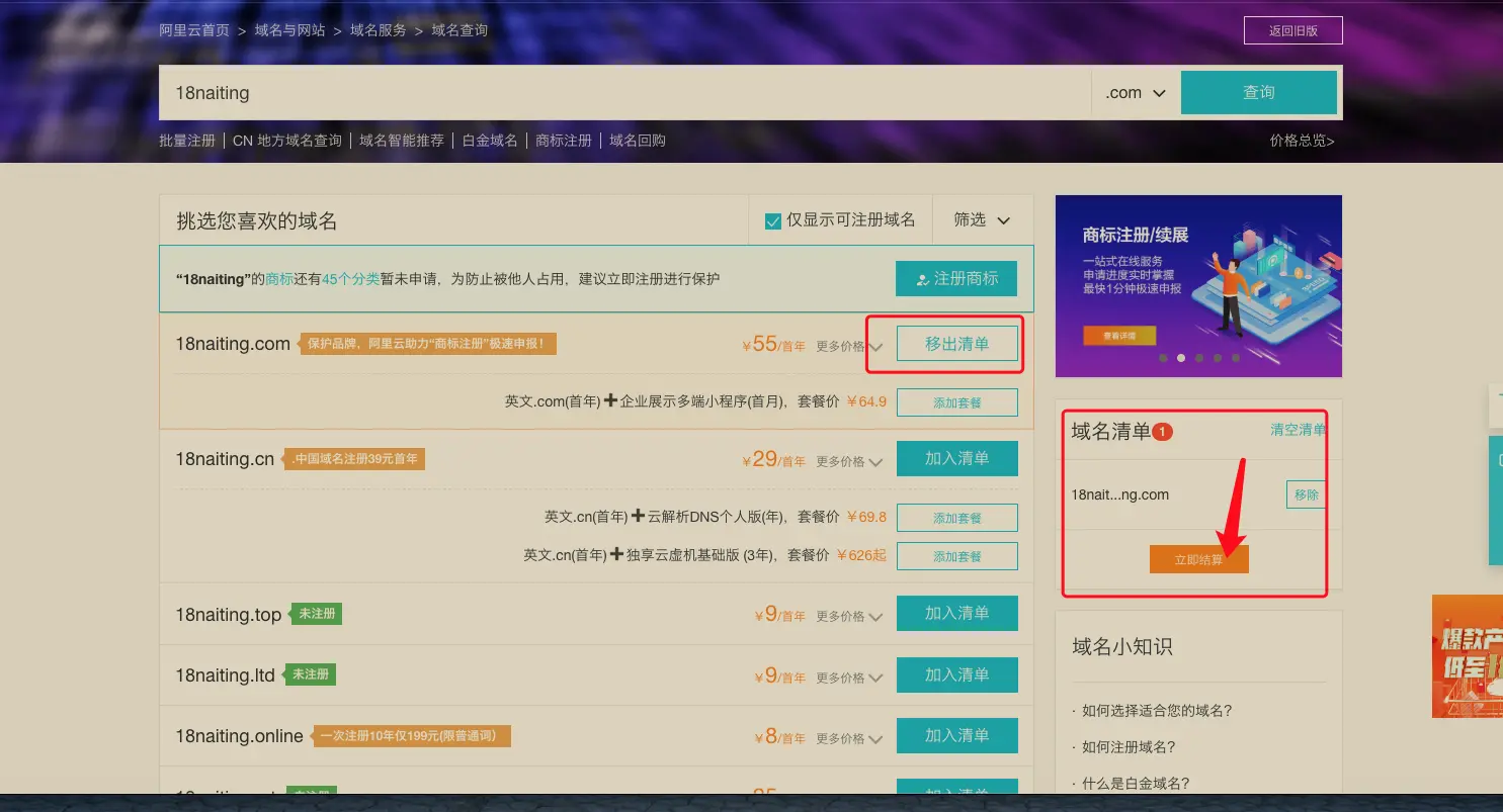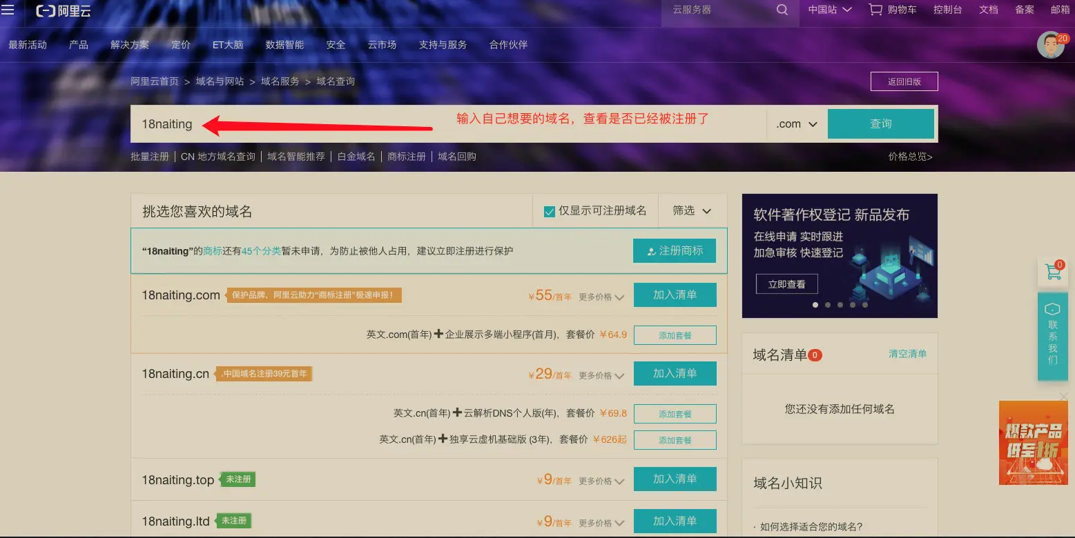 如果你自己想要的域名刚好没被注册那你就赶紧加入清单去购买注册