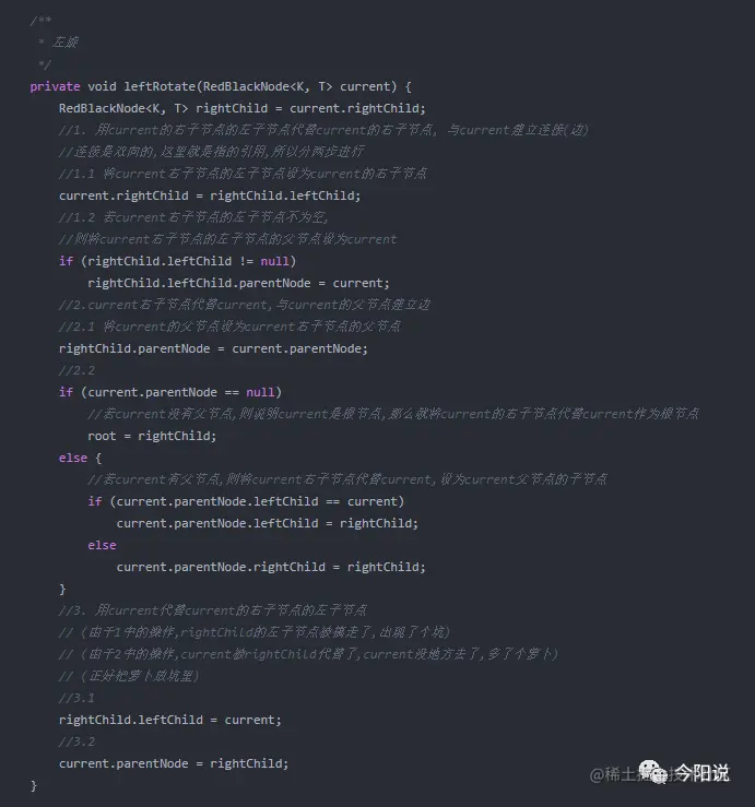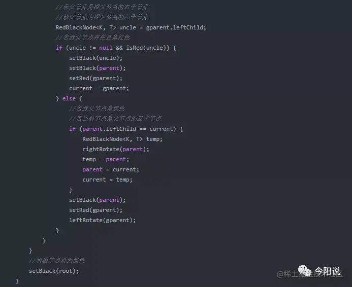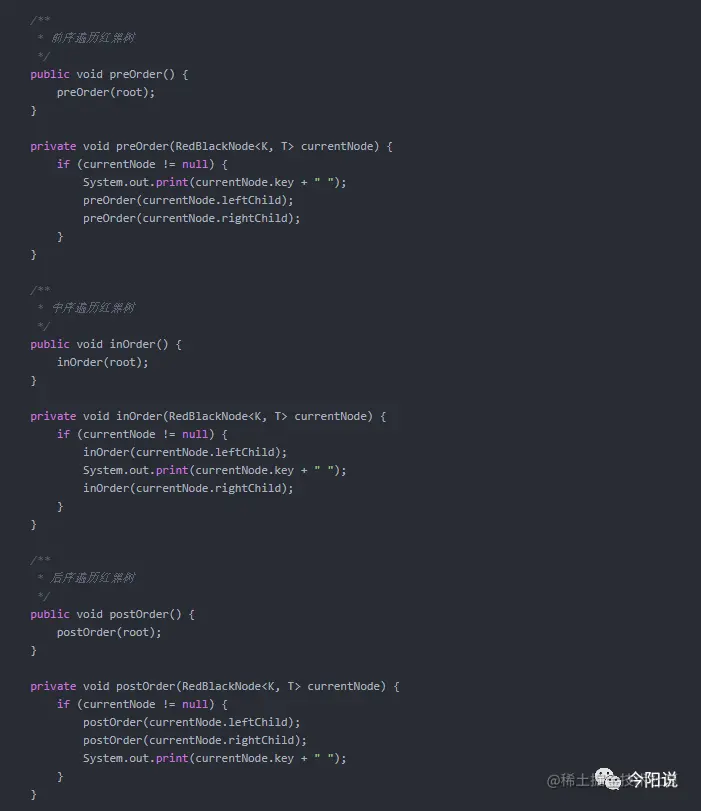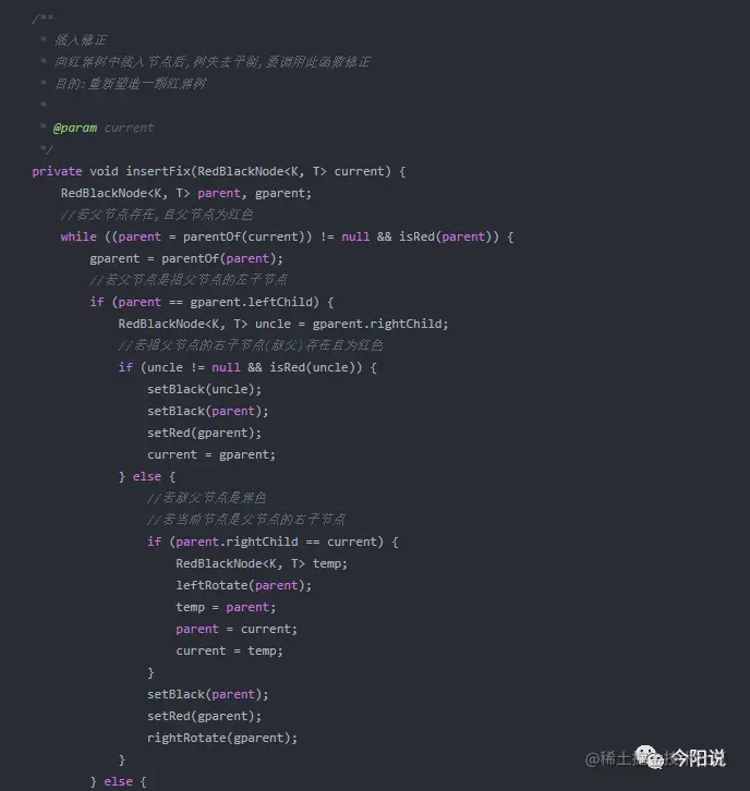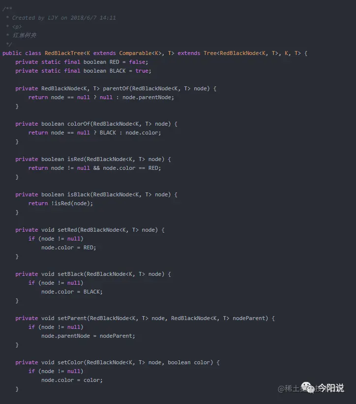 4. 红黑树的实现类,代码稍多,其中会有些注释作为说明: