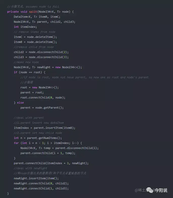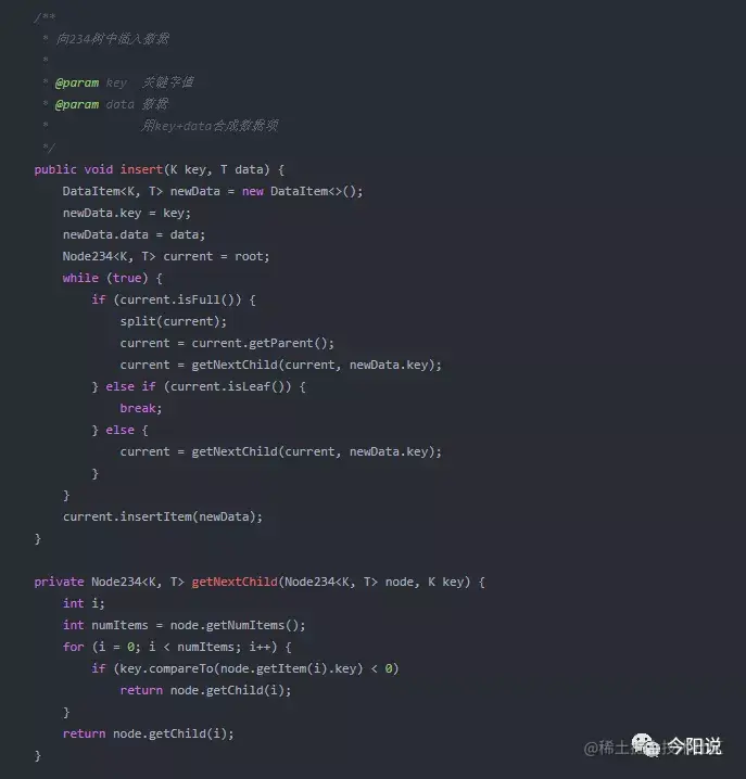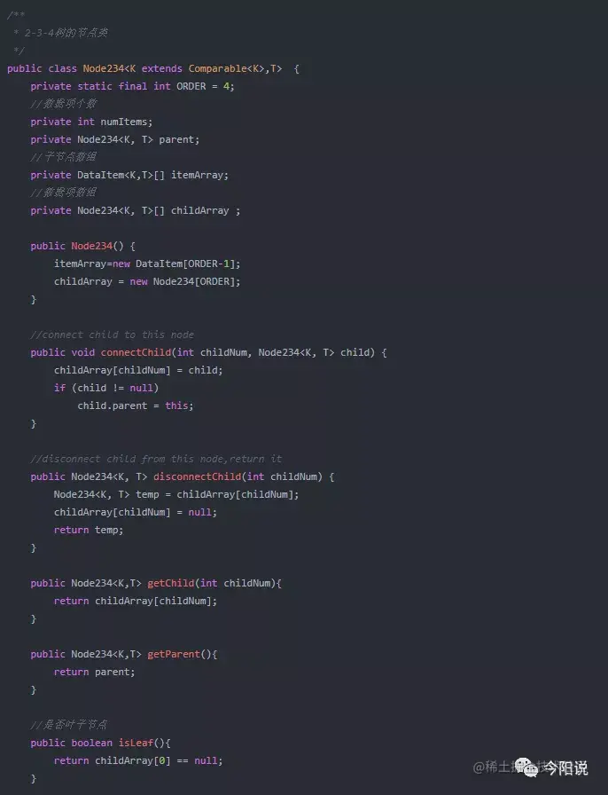 3. 2-3-4树的实现类,代码稍多,其中会有些注释作为说明: