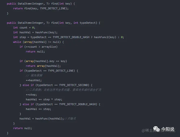 c. 再哈希法:根据关键字使用哈希函数算出不同的步长(依赖关键字的探测序列),但要求表的容积是一个质数 (第二个哈希函数需要具备两个特点:1.和第一个哈希函数不同; 2.不能输出0(否则将没有步长,每次探测都是原地踏步,陷入死循环)) (例如:stepSize=constant-(key%constant))(constant是一个常数,步长的最大值);