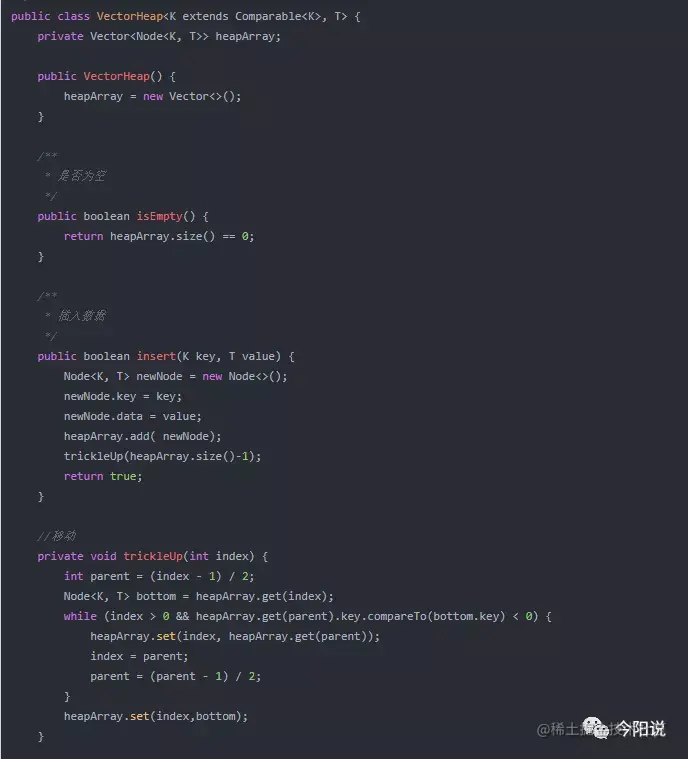 注: 这里没有对数组进行扩展的操作, 之前在HashTable中已经有过相关的实现;另外, 也可以用Vector代替数组,Vector 是可以自动扩展的,详见下面的VectorHeap: