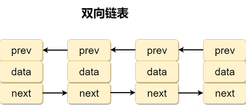 - 双向链表: 包含两个指针,一个 prev 指向前一个节点,一个 next 指向后一个节点