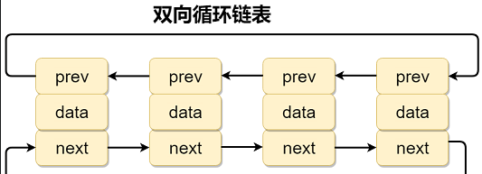- 双向循环链表: 最后一个节点的 next 指向 head,而 head 的 prev 指向最后一个节点,构成一个环