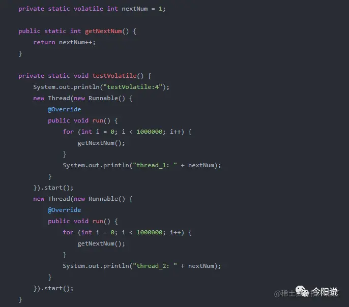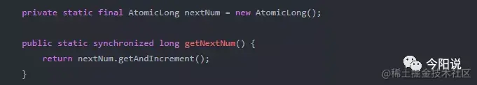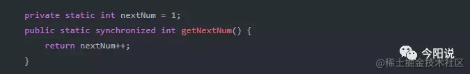 问题在于,增量操作符++不是原子的,它在getNextNum中执行两项操作,首先它读取值,然后写回一个新值(原值+1);
