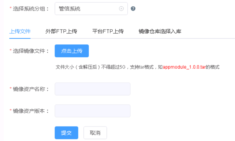 1、将镜像文件(o2oa_1.0.0.tar)上传至PAAS平台的镜像仓库。使用PAAS平台提供的镜像资产上载工具(如下图)