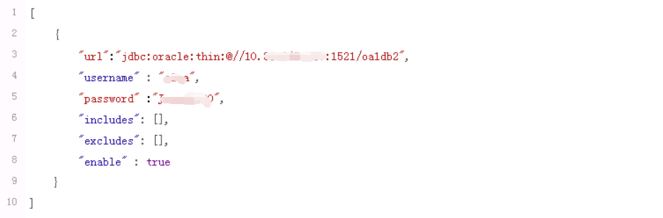 externalDataSources.json 配置文件内容为oracle相关数据库地址、端口、实例、用户名和口令配置