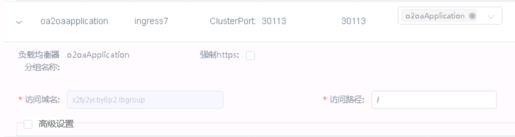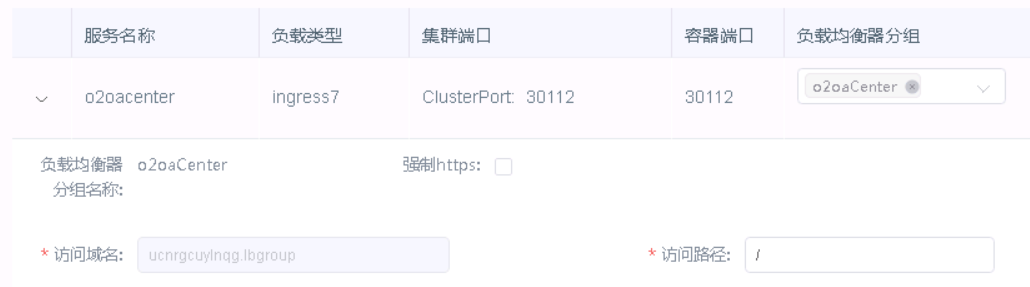 3.4、应用与7层负载关联配置, o2oa的3个http服务对应3个7层负载,上下文转发规则为 “/” 。配置界面如下