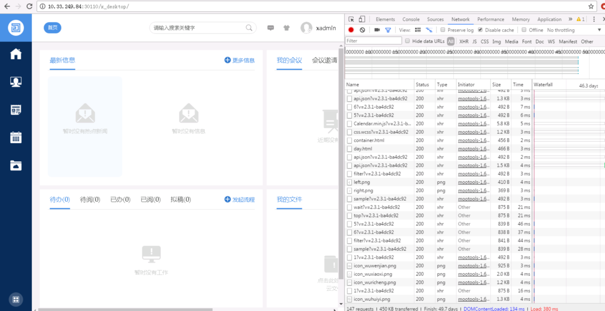 3.5、应用能够正常启动,访问效果如下。目测相关网络请求无报错信息。