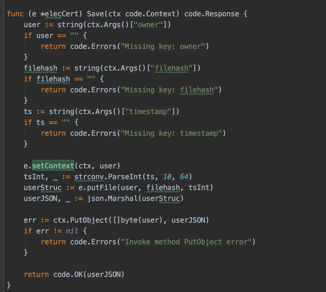 下面咱分析下go语言版本的存证合约的逻辑