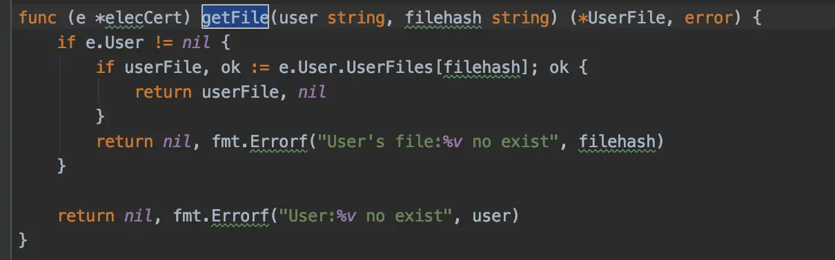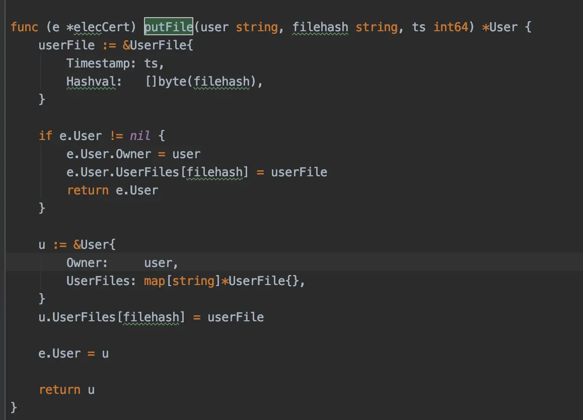 这个方法首先根据owner(代表用户名称)去链上查询对应的value 根据上面的分析 该value保存着一个用户对象,第一次调用的时候该用户对象是里面的属性都没有进行初始化呢 然后调用putFile方法