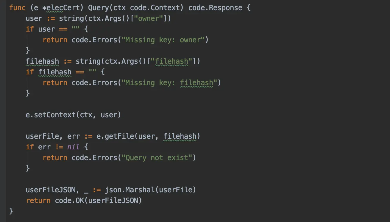 首先获取到部署命令中的owner参数表示用户名 然后调用链上的方法GetObject来查询该用户名对应的value