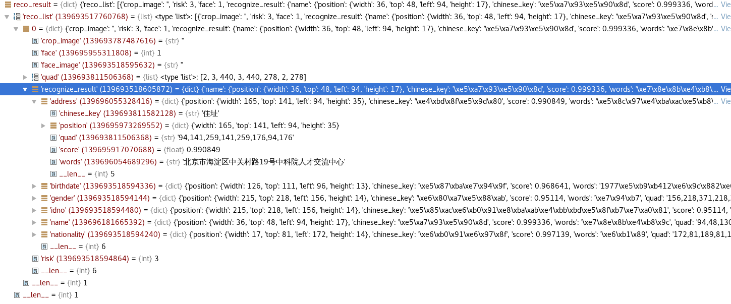 - reco_result = eval(recognize_id_card(file_data, check_image, crop_image, hard_mode)) -- xml -- recognize.py - line924
