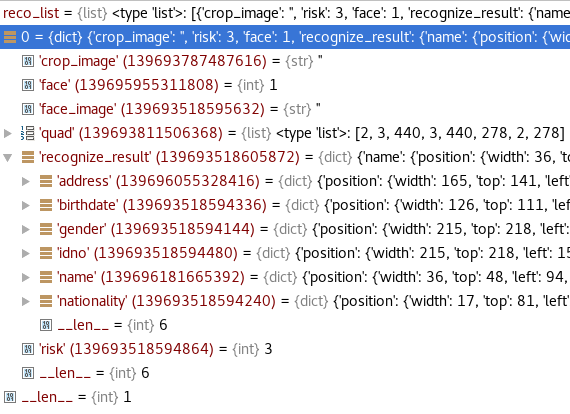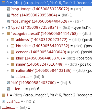 - reco_result = eval(recognize_id_card(file_data, check_image, crop_image, hard_mode)) -- xml -- recognize.py - line924 xml: