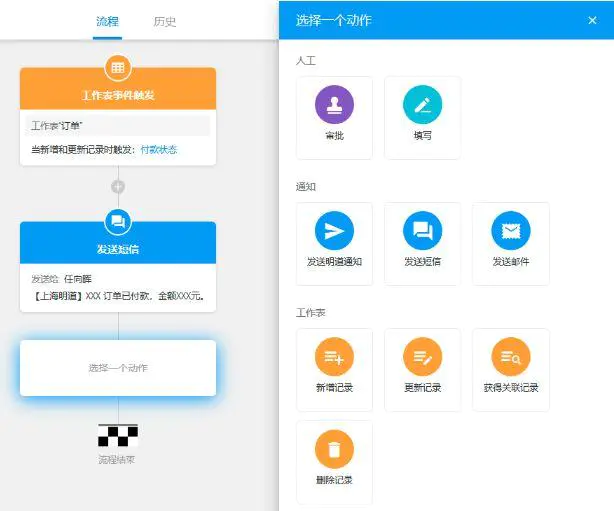 工作流是明道云的流程引擎,它采用极简的IFTTT逻辑(如果xx,就xx),实现企业内部的流程控制和自动化。比如如果订单生效就自动开出发票,如果采购金额大于5000元,就需要两位主管审批,当采购订单收货日期快到的时候通知仓库等等。只要有规则的流程操作,都可以使用工作流自动完成。明道云提供了15种自动化动作,帮助企业减少重复的人工操作。