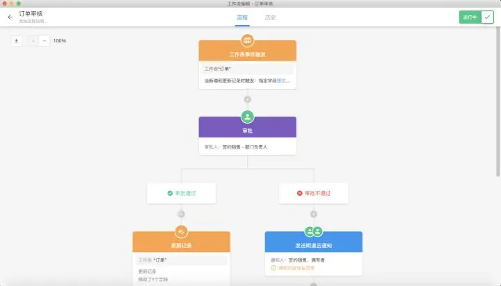4)流程的控制。例如:当起草采购订单并准备发出时,根据采购的类别和金额发起不同的审核流程,在审核通过或者拒绝后执行不同的流程内容。