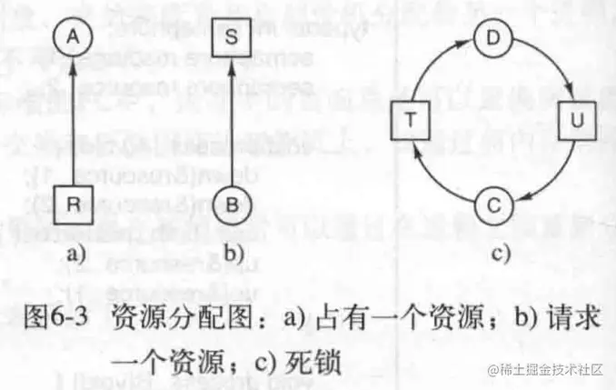 需要排他性地使用的对象称为资源。资源可以是硬件设备(打印机,扫描仪),也可以是数据库里地一条加锁记录。在一台计算机里,可能有多种资源,每种资源的实例可能不止一种。