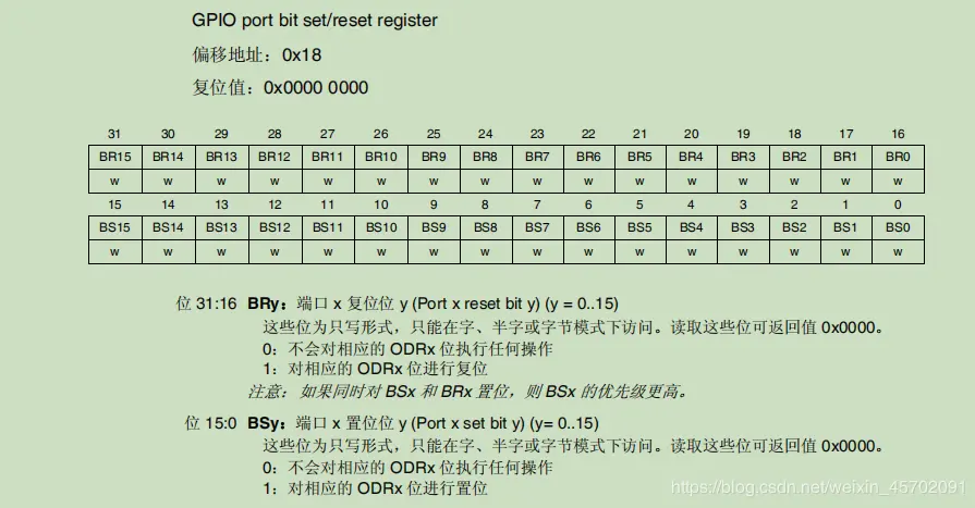 1 个 32 位置位/复位寄存器 (GPIOx_BSRR)、