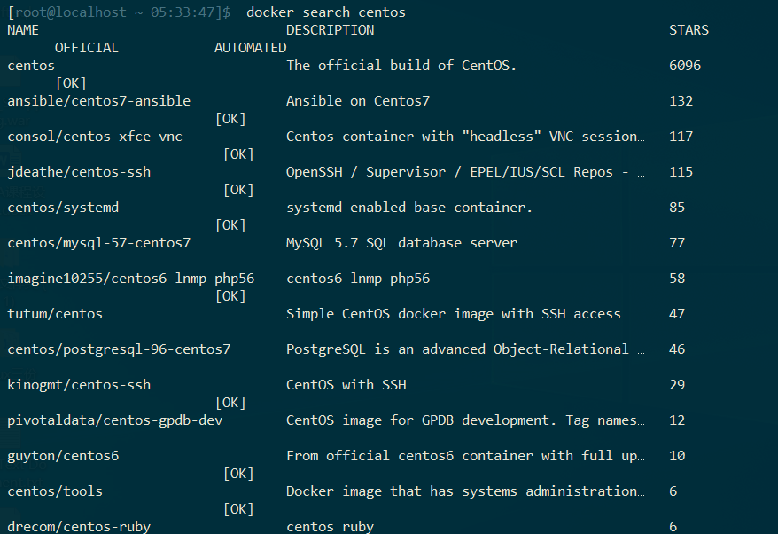 搜索镜像: docker search [镜像名]
