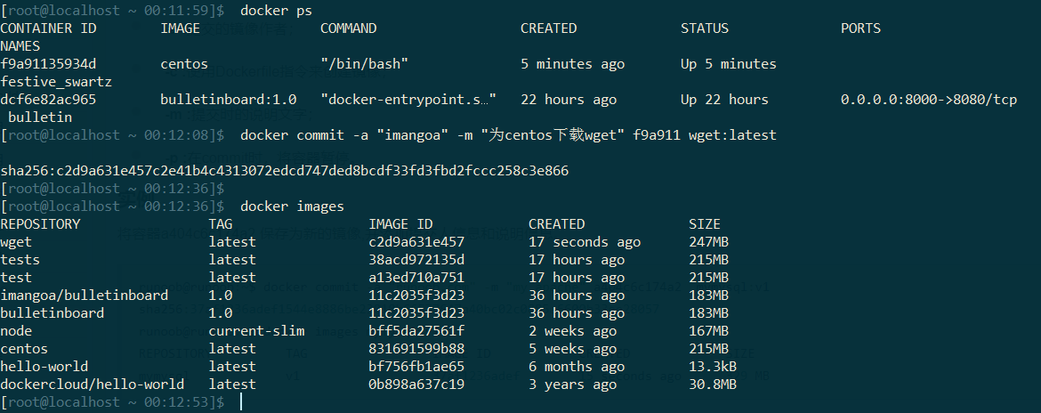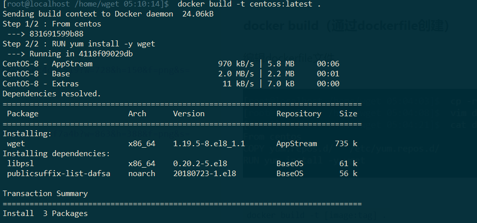 通过centos image创建容器,下载wget,然后commit新镜像。