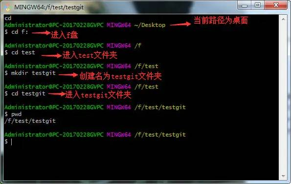 ①在F盘 –> test文件夹下 目录下新建一个testgit版本库: