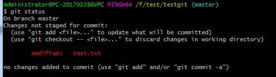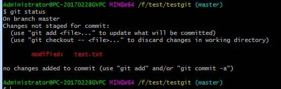 上面的命令告诉我们 test.txt文件已被修改,但是有未被提交的修改。