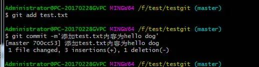 知道了对test.txt文件做了什么修改后,我们可以放心的提交到仓库了,提交修改和提交文件是一样的2步(第一步是git add 第二步是:git commit)。