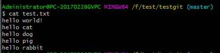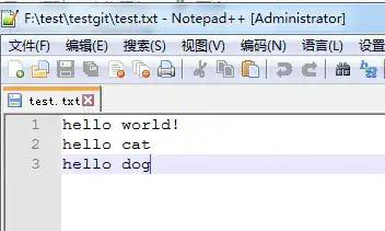 如上可以看到,test.txt文件内容从一行hello world!改成 二行 添加了一行hello cat内容。