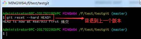 现在我想使用版本回退操作,我想把当前的版本回退到上一个版本,可以使用如下2种命令: