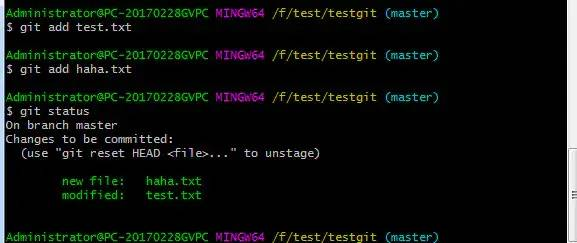 第一步:使用命令 git add test.txt添加到暂存区里面去。如下: